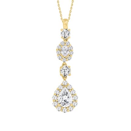 LADIES PENDANT WITH CHAIN 2CT PEAR/ROUND/OVAL DIAMOND 14K YELLOW GOLD