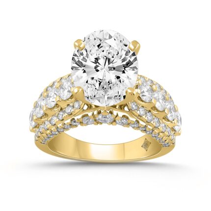 LADIES BRIDAL RING 7 1/4CT ROUND/OVAL DIAMOND 14K YELLOW GOLD (CENTER STONE OVAL DIAMOND 5.00CT)