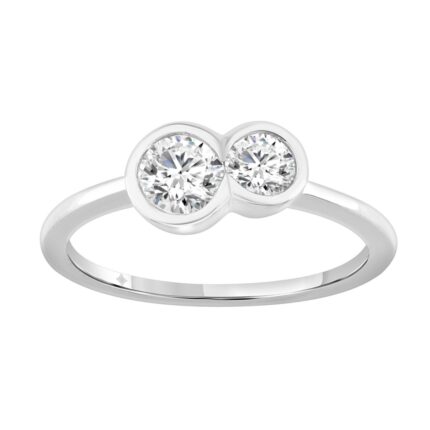 3/4CT White Gold 10K Collection Linked Hearts & Two-Stone Round Diamond Ring for Women (Color F-G -Clarity VS1/VS2)