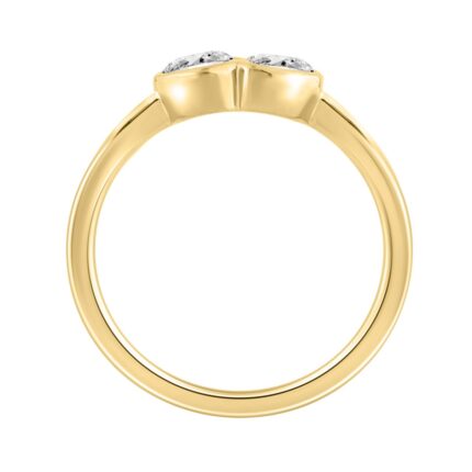 3/4CT Yellow Gold 10K Collection Linked Hearts & Two-Stone Round Diamond Ring for Women (Color F-G -Clarity VS1/VS2)