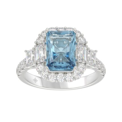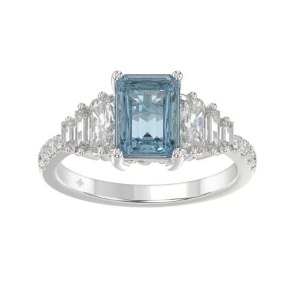 14K WHITE GOLD 3 1/4CT ROUND/BAGUETTE/EMERALD DIAMOND LADIES RING (CENTER STONE EMERALD BLUE DIAMOND 2.00CT)