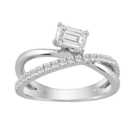 14K WHITE GOLD 3/4CT ROUND/EMERALD DIAMOND LADIES RING