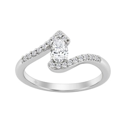 14K WHITE GOLD 3/8CT ROUND/PEAR DIAMOND LADIES RING (CENTER STONE PEAR DIAMOND 1/4CT)