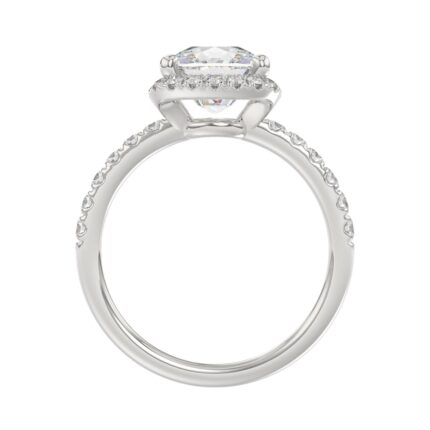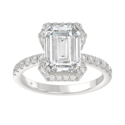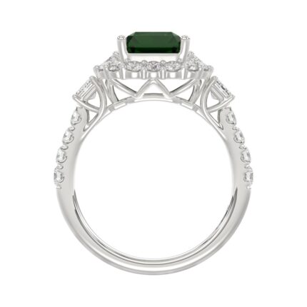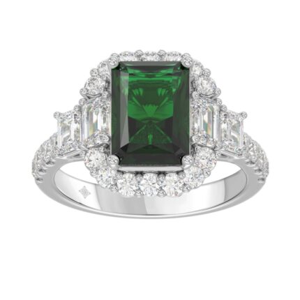 14K White Gold 4 1/2CT ladies Round & Emerald-cut diamond halo engagement Ring 4.00CT Emerald Center stone (Color F-G -Clarity VS1/VS2)