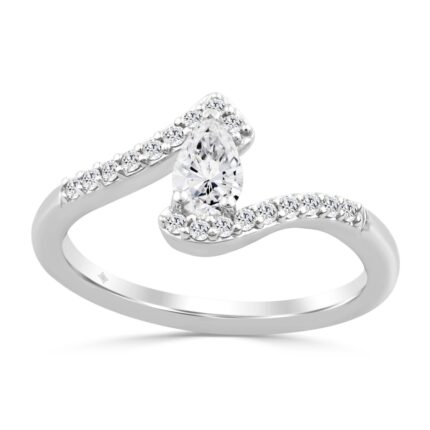 14K WHITE GOLD 3/8CT ROUND/PEAR DIAMOND LADIES RING (CENTER STONE PEAR DIAMOND 1/4CT)