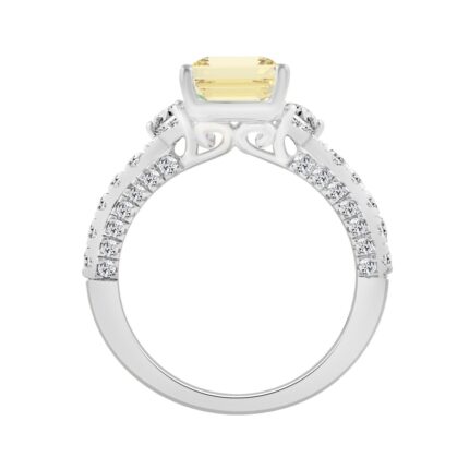 14K WHITE GOLD 4.00CT ROUND/EMERALD/HALF MOON DIAMOND LADIES RING (CENTER STONE YELLOW EMERALD DIAMOND 3.00CT)