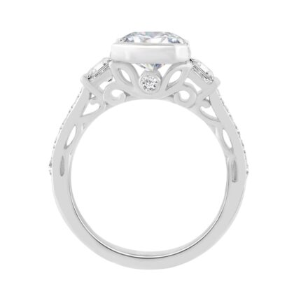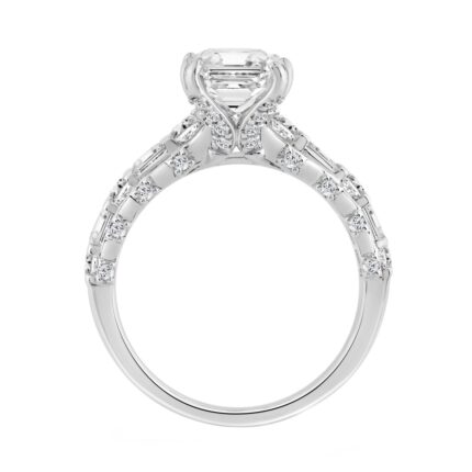 14K WHITE GOLD 5.00CT ROUND/CUSHION/BAGUETTE DIAMOND LADIES RING (CENTER STONE CUSHION DIAMOND 4CT