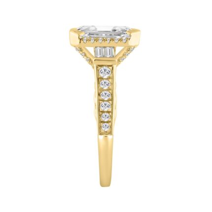 14K YELLOW GOLD 3 1/2CT ROUND/BAGUETTE/EMERALD DIAMOND LADIES RING (CENTER STONE EMERALD DIAMOND 3CT)