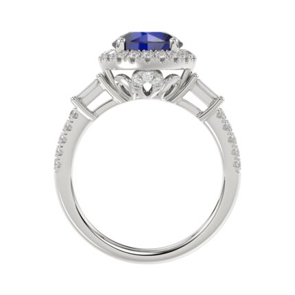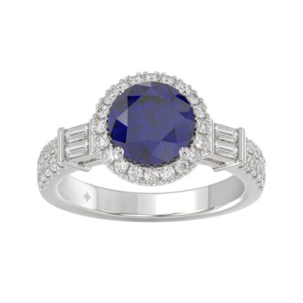 14K WHITE GOLD 2 1/2CT ROUND/BAGUETTE DIAMOND LADIES RING (CENTER STONE BLUE SAPPHIRE ROUND DIAMOND 2CT)
