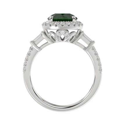 14K WHITE GOLD 2 1/2CT ROUND/BAGUETTE DIAMOND LADIES RING (CENTER STONE GREEN EMERALD ROUND DIAMOND 2CT)