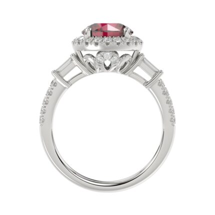 14K WHITE GOLD 2 1/2CT ROUND/BAGUETTE DIAMOND LADIES RING (CENTER STONE ROUND RUBY DIAMOND 2CT)