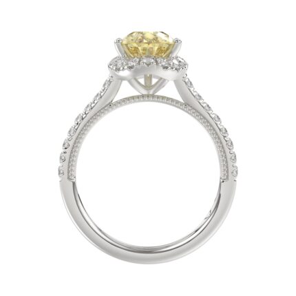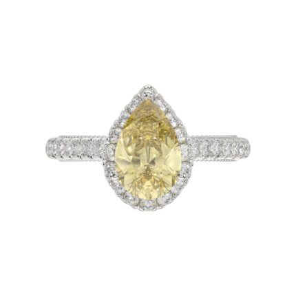 14K WHITE GOLD 2 1/2CT ROUND/PEAR DIMAOND LADIES RING (CENTER STONE PEAR YELLOW DIAMOND 2.00CT)