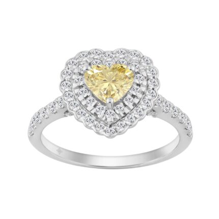 14K WHITE GOLD 1 1/2CT ROUND/YELLOW HEART DIAMOND LADIES RING