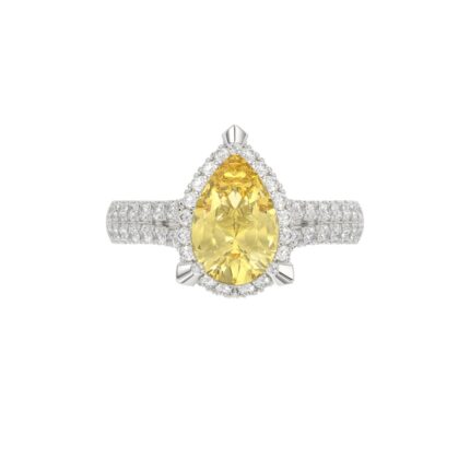 14K WHITE GOLD CRAFTED WITH 18K YELLOW GOLD SHANK 2 3/4CT ROUND/YELLOW PEAR DIAMOND LADIES RING (CENTER STONE YELLOW PEAR DIAMOND 2.00CT)