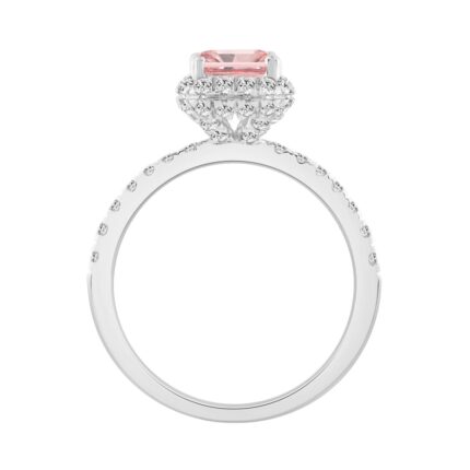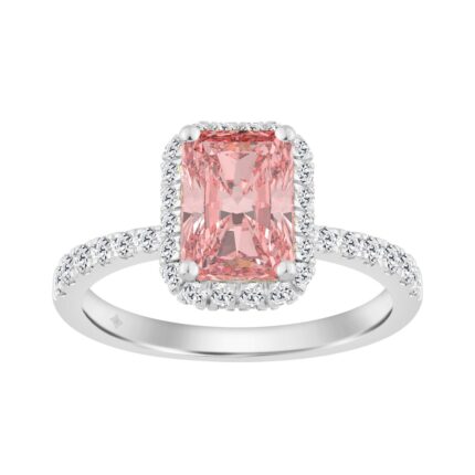 Luxury 14K White Gold Round & Radiant Pink Diamond Halo Engagement Ring 2.00CT with 1 1/2CT Radiant Cut Pink Center Stone (Color F-G -Clarity VS1/VS2)