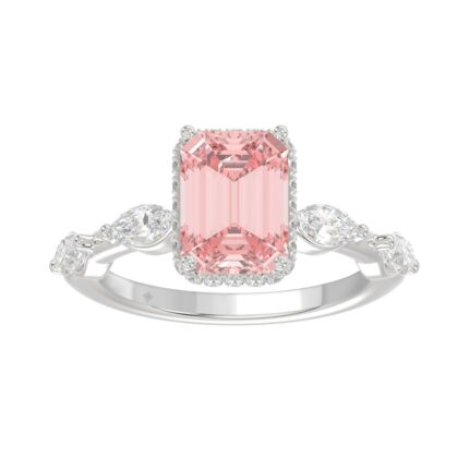 14K WHITE GOLD 3 1/2CT ROUND/MARQUISE/PINK EMERALD DIAMOND LADIES RING (CENTER STONE PINK EMERALD DIAMOND 3.00CT)