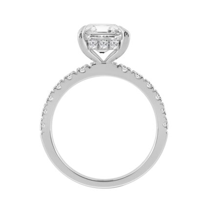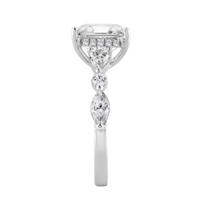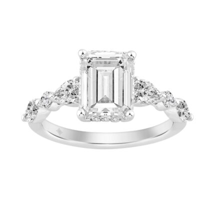 14K White Gold Emerald Cut Diamond Classic Bridal Ring for Ladies 4.00CT with Pear Round & Marquise Diamond 3.00CT Emerald Center stone (Color F-G
