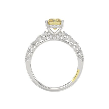 14K WHITE GOLD CRAFTED WITH 18K YELLOW GOLD SHANK 2 3/4CT ROUND/BAGUETTE/EMERALD DIAMOND LADIES BRIDAL RING (CENTER STONE RADIANT YELLOW DIAMOND 2.00C