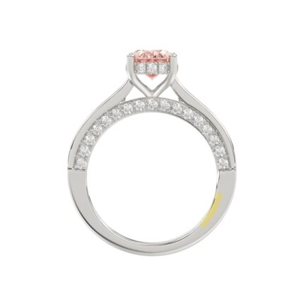 14K WHITE GOLD CRAFTED WITH 18K YELLOW GOLD SHANK 2 3/4CT ROUND/OVAL/PRINCESS/BAGUETTE DIAMOND LADIES RING (CENTER STONE PINK OVAL DIAMOND 1 1/2CT)