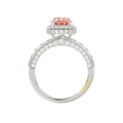 14K WHITE GOLD CRAFTED WITH 18K YELLOW GOLD SHANK 3 1/3CT ROUND/PEAR DIAMOND LADIES RING (CENTER STONE PINK PEAR DIAMOND 2.00CT)