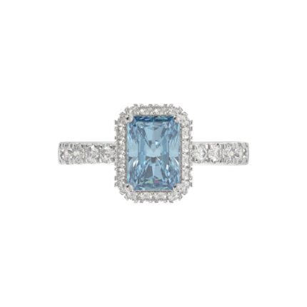 1 1/4CT Elegance Ring 14k Round/Radiant Diamond White Gold 1.00CT Blue Radiant Center stone (Color F-G -Clarity VS1/VS2)