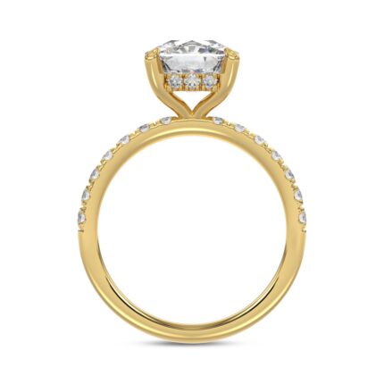 14K YELLOW GOLD 3 1/2CT ROUND/CUSHION DIAMOND LADIES RING (CENTER STONE CUSHION DIAMOND 3CT)