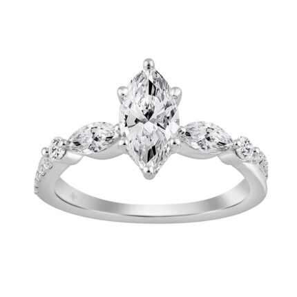 14K WHITE GOLD 1 3/4CT MARQUISE/ROUND DIAMOND LADIES RING (CENTER STONE MARQUISE DIAMOND 1 1/2CT)