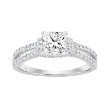 14K WHITE GOLD 1 1/2CT ROUND/PRINCESS DIAMOND LADIES BRIDAL RING (CENTER STONE PRINCESS DIAMOND 1CT)