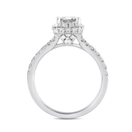 LADIES RING 2 3/4CT ROUND/EMERALD DIAMOND 14K WHITE GOLD (CENTER STONE EMERALD DIAMOND 2CT )
