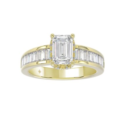 LADIES RING 2 3/4CTROUND/BAGUETTE/EMERALD DIAMOND 14K YELLOW GOLD (CENTER STONE EMERALD DIAMOND 2.00CT )
