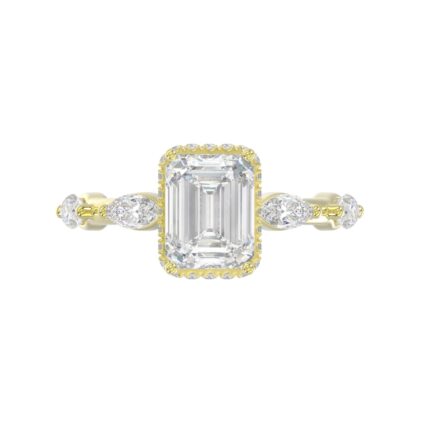 LADIES RING 3 1/2CT ROUND/MARQUISE/EMERALD DIAMOND 14K YELLOW GOLD (CENTER STONE EMERALD DIAMOND 3.00CT)