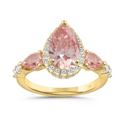 LADIES RING 3 3/4CT ROUND/PINK PEAR DIAMOND 14K YELLOW GOLD (CENTER STONE PINK PEAR DIAMOND 2CT )