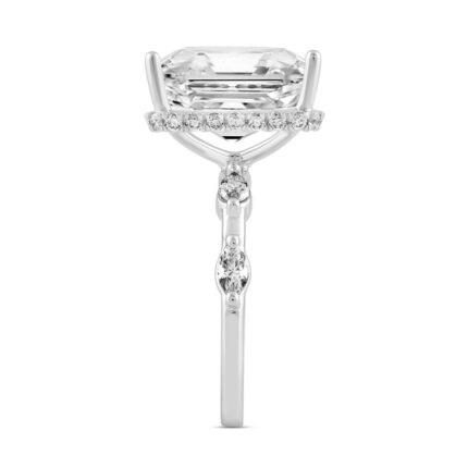 LADIES RING 8 3/4CT ROUND/EMERALD/MARQUISE DIAMOND 14K WHITE GOLD (CENTER STONE EMERALD DIAMOND 8.00CT)