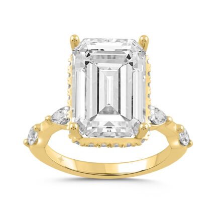 LADIES RING 8 3/4CT ROUND/EMERALD/MARQUISE DIAMOND 14K YELLOW GOLD (CENTER STONE EMERALD DIAMOND 8.00CT)