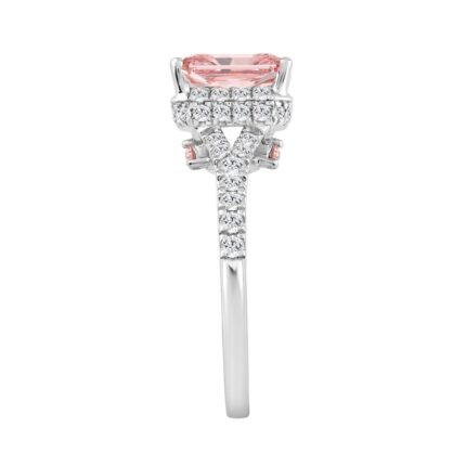 Luxury 14K White Gold Round & Radiant Pink Diamond Halo Engagement Ring 2 1/5CTCT with 1 1/2CT Radiant Cut Pink Center Stone (Color F-G Clarity V