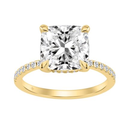 14K YELLOW GOLD 4 3/4CT ROUND/CUSHION DIAMOND LADIES RING (CENTER STONE CUSHION DIAMOND 4CT)