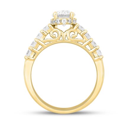 LADIES RING 2 1/2CT ROUND/PEAR/DIAMOND 14K YELLOW GOLD