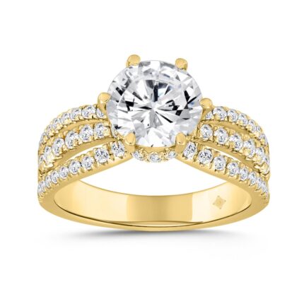 LADIES RING 2 3/4 CT ROUND DIAMOND 14K YELLOW GOLD (CENTER STONE ROUND DIAMOND 2CT )