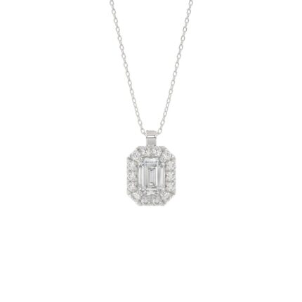 LADIES PENDANT WITH CHAIN 1 3/8CT ROUND/EMERALD DIAMOND 14K WHITE GOLD (CENTER STONE EMERALD DIAMOND 1CT )