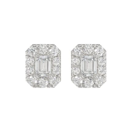 LADIES STUD EARRINGS 1CT EMERALD/ROUND DIAMOND 14K WHITE GOLD