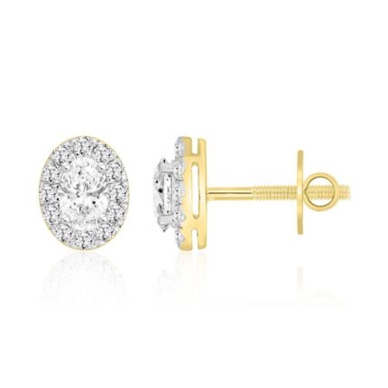LADIES STUD EARRINGS 1CT OVAL/ROUND DIAMOND 14K YELLOW GOLD