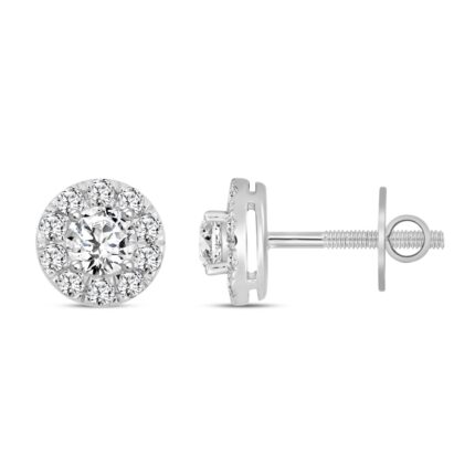 LADIES STUD EARRINGS 1CT ROUND DIAMOND 14K WHITE GOLD