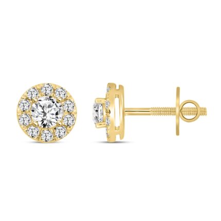 LADIES STUD EARRINGS 1CT ROUND DIAMOND 14K YELLOW GOLD
