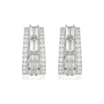HOOP EARRINGS 0.50CT ROUND/BAGUETTE DIAMOND 14K WHITE GOLD