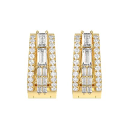 Classic 10K Yellow Gold Round & Baguette Lab Grown Diamond ladies Hoop Earrings 1/2CT (Color F-G -Clarity VS1/VS2)