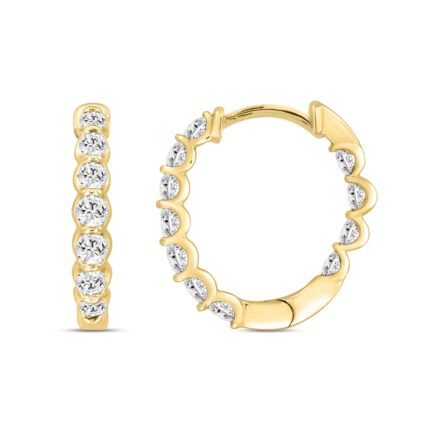 18K YELLOW GOLD 1.00CT ROUND DIAMOND HOOP EARRINGS
