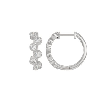 18K WHITE GOLD 1.00CT ROUND DIAMOND HOOP EARRINGS