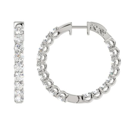 LADIES HOOP EARRINGS 5CT ROUND DIAMOND 14K WHITE GOLD
