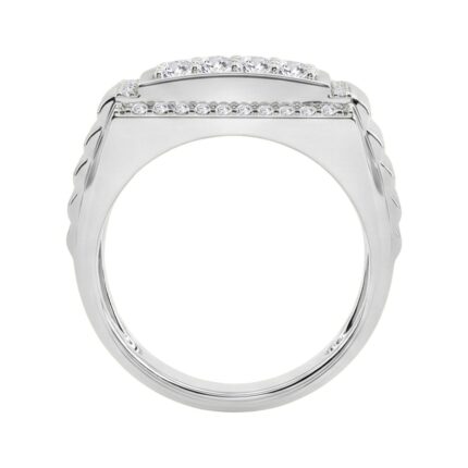 Men’s Fashion Ring 1.00CT in 14k White Gold featuring a square cluster of round-cut diamonds (Color F-G -Clarity VS1/VS2)