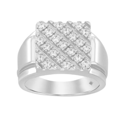 MEN’S RING 1CT ROUND DIAMOND 14K WHITE GOLD